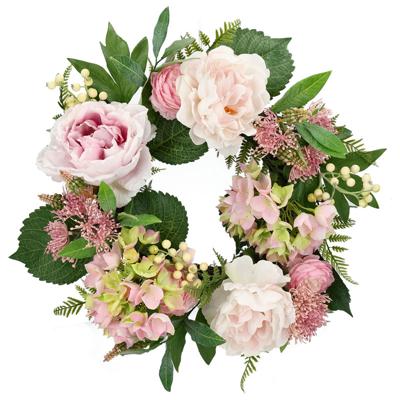 Krans Pion Och Hortensia Rosa