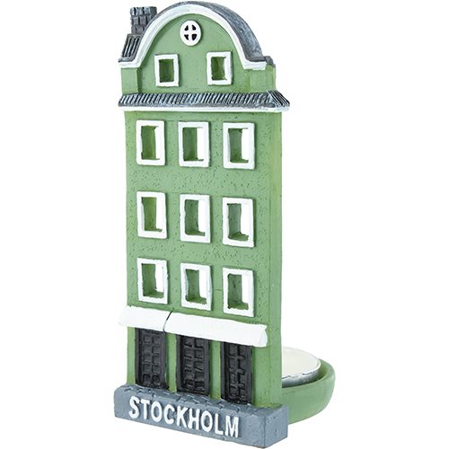 En vacker ljuslykta med en fasad av Runstenshuset, Stockholm från Nordic Souvenir.