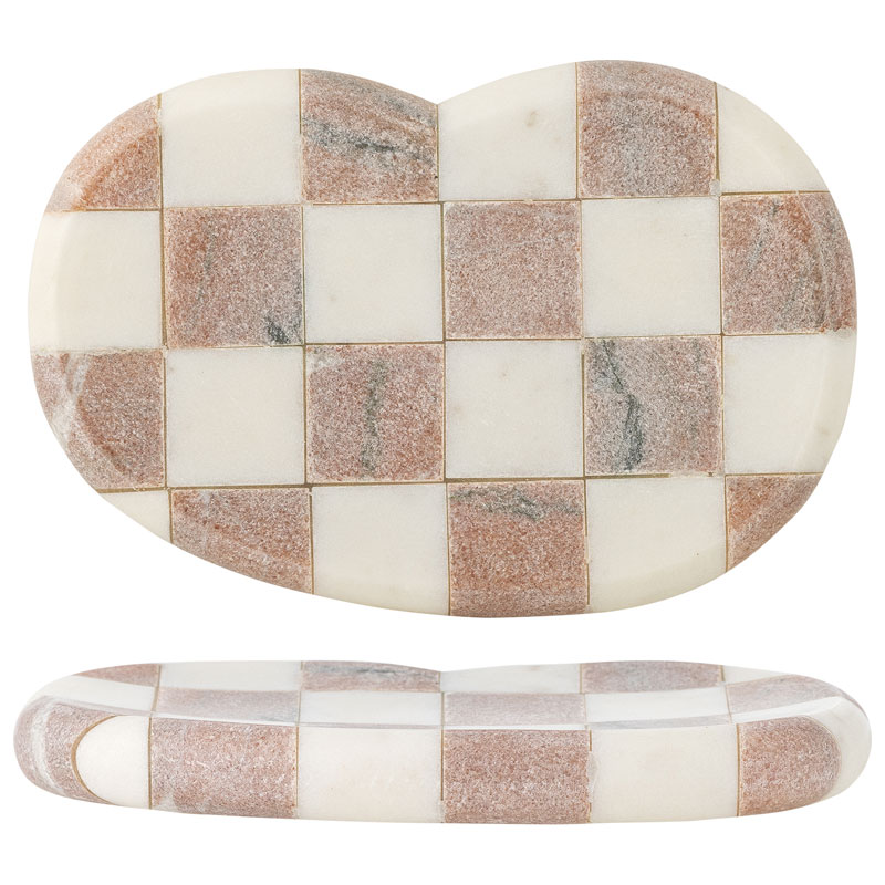 Petera är ett vackert marmorfat med ett snyggt schackmönster i vitt och rosé.
