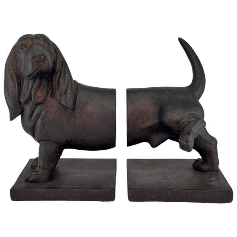 Charmigt bokstöd från Miljögården, i form av en ståtlig tax där vardera stöd är en del av hästen.
