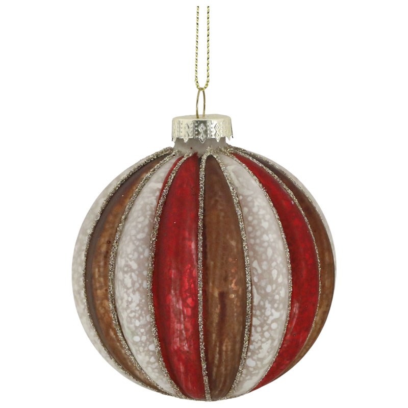 Klassisk julkula från Chic Antique tillverkad i glas, prydd av ränder i rött och silver.
