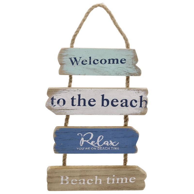 Texten "welcome to the beach" är perfekt att placera vid havsstugan eller bryggan.