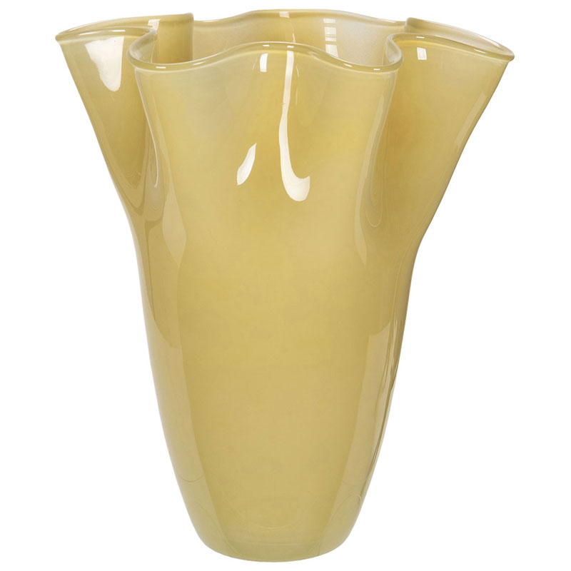 Vacker neutral vas från A Lot Decoration en vacker gul nyans, tillverkad i glas med en dekorativ vågig hals.