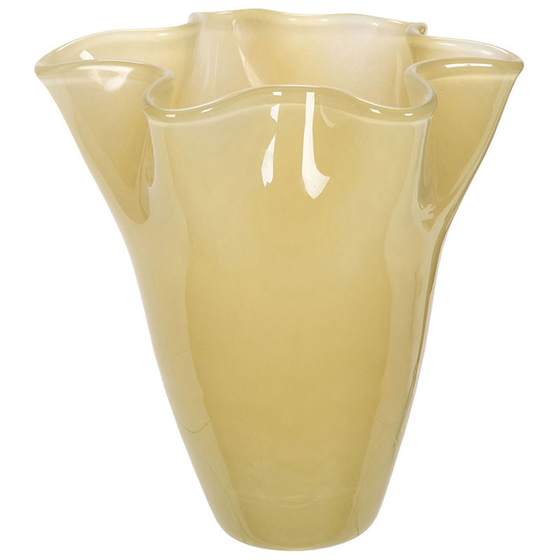 Vacker neutral vas från A Lot Decoration en vacker gul nyans, tillverkad i glas med en dekorativ vågig hals.