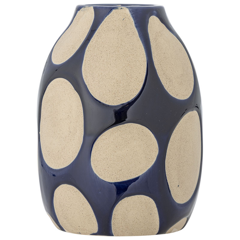 Bashir från Bloomingville är en stengodsvas med rundad silhuett och en blank blå vaxad glasyr.