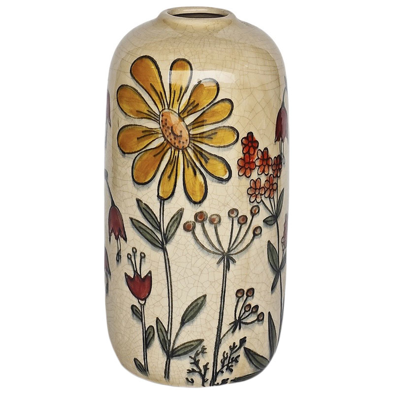 Romantiskt vas från Miljögården tillverkad av stengods, prydd av ett handmålad blommönster mot en naturfärgad botten.