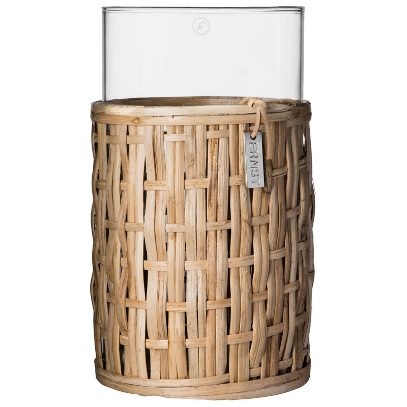 Iögonfallande vas från ERNST, placerad i en vacker korg.