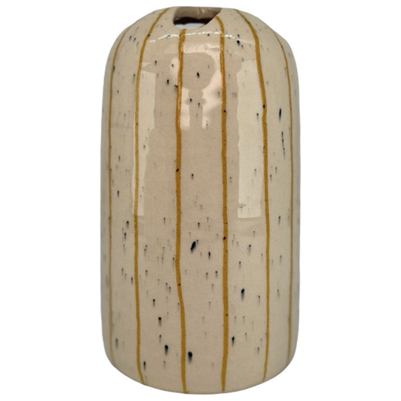 Tjusig vas med flera hål för att sätta snittblommor, grenar och växter i, från Miljögården. Vasen är vackert handmålad med smala ränder.
