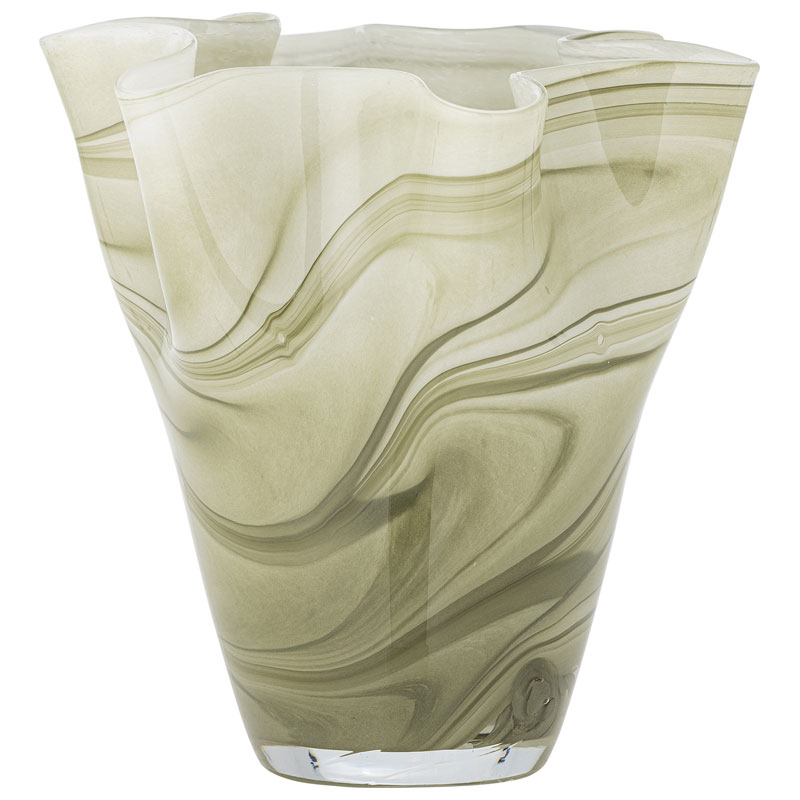 Toryn från Creative Collection är en dekorativ glasvas med en skulptural silhuett, vågig kant och marmorerad yta i mjuka gröna nyanser.
