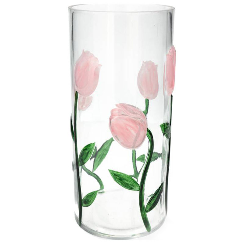 Tjusig och dekorativ vas från A Lot Decoration. En mjukt formad vas i klarglas med målade tulpaner i en varm ljusrosa ton. Ger ett levande och romantiskt uttryck.