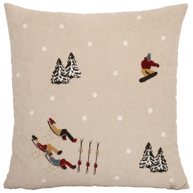 Härligt kuddfodral med motiv av skidåkare i en backe.