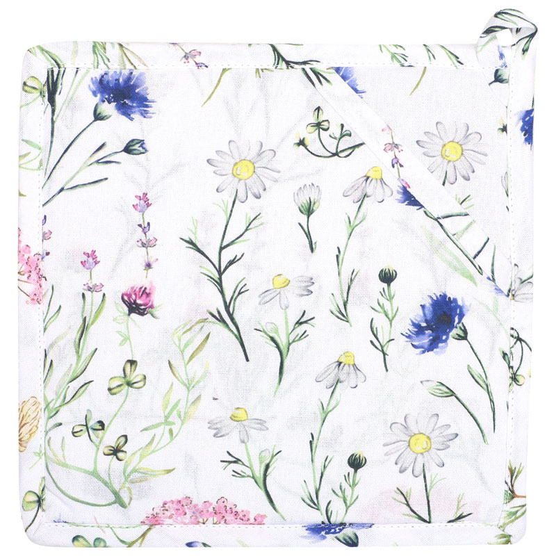 Vacker grytlapp från Classic Textiles, tillverkad i återvunnet material. Med det snygga blommönstret blir detta både en stilig och praktisk detalj i köket till sommaren.
