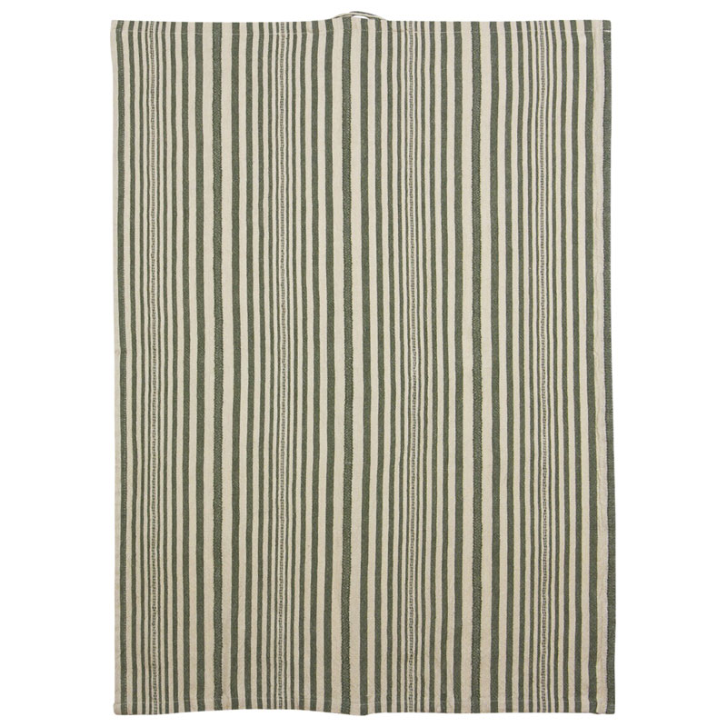 Karin kökshandduk från Fondaco är en klassisk handduk i grönt med randigt mönster som ger köket en hemtrevlig känsla.