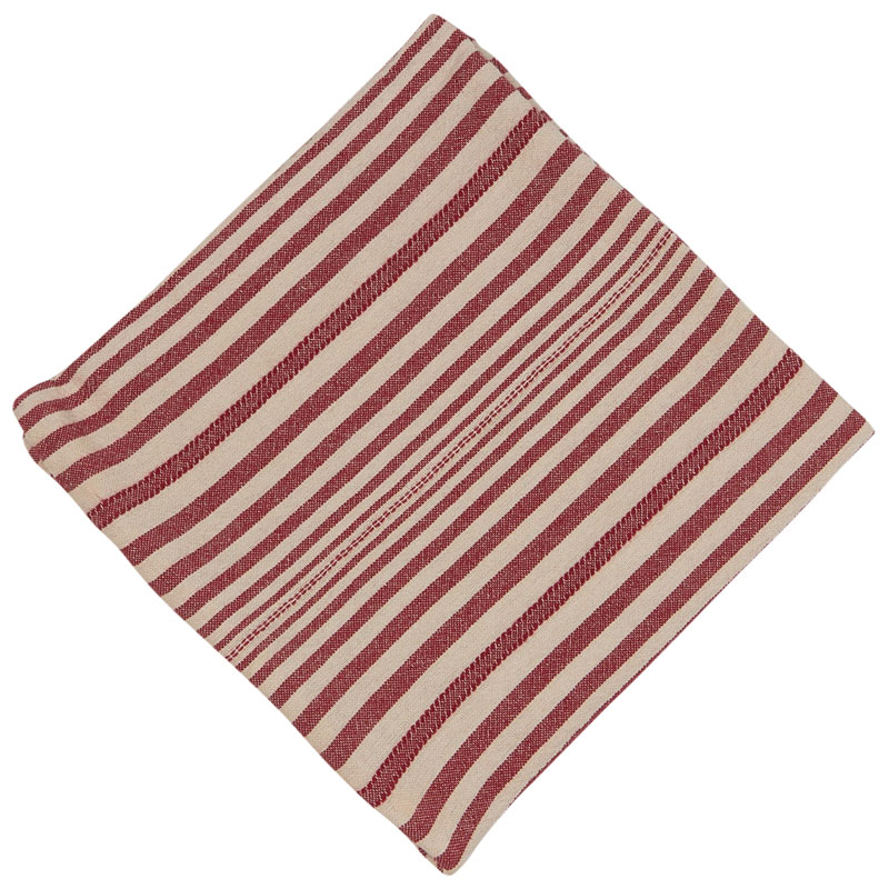 Karin servett från Fondaco är en tygservett i rött med klassiskt randmönster som ger dukningen en varm och traditionell känsla.