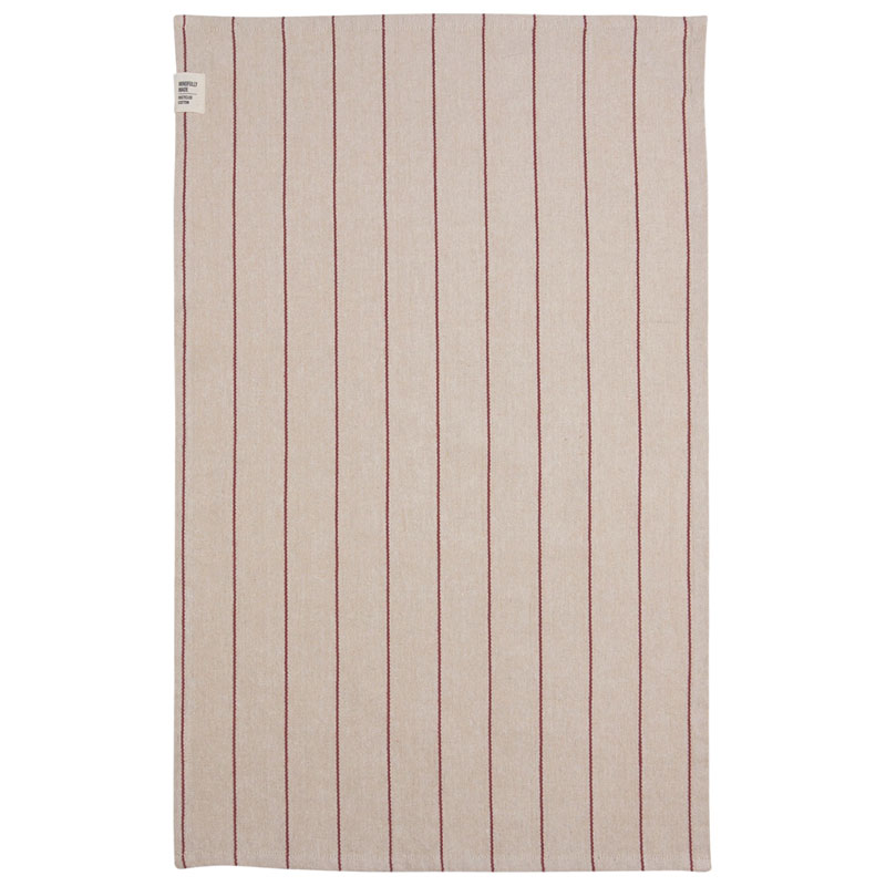 Lucas kökshandduk från Fondaco är en röd handduk i bomull med klassiskt randmönster.
