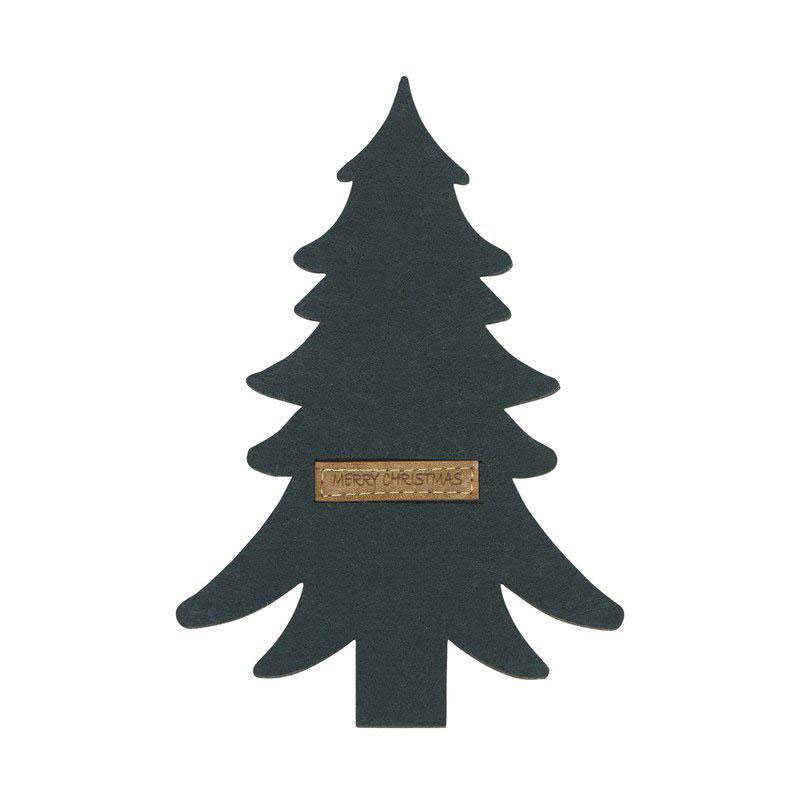 Läcker bestickhållare tillverkad i filtmaterial från Fondaco. Med formen av en gran och etikett gjord i konstskinn.
