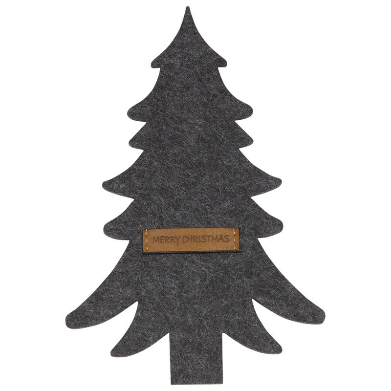 Läcker bestickhållare tillverkad i filtmaterial från Fondaco. Med formen av en gran och etikett gjord i konstskinn.