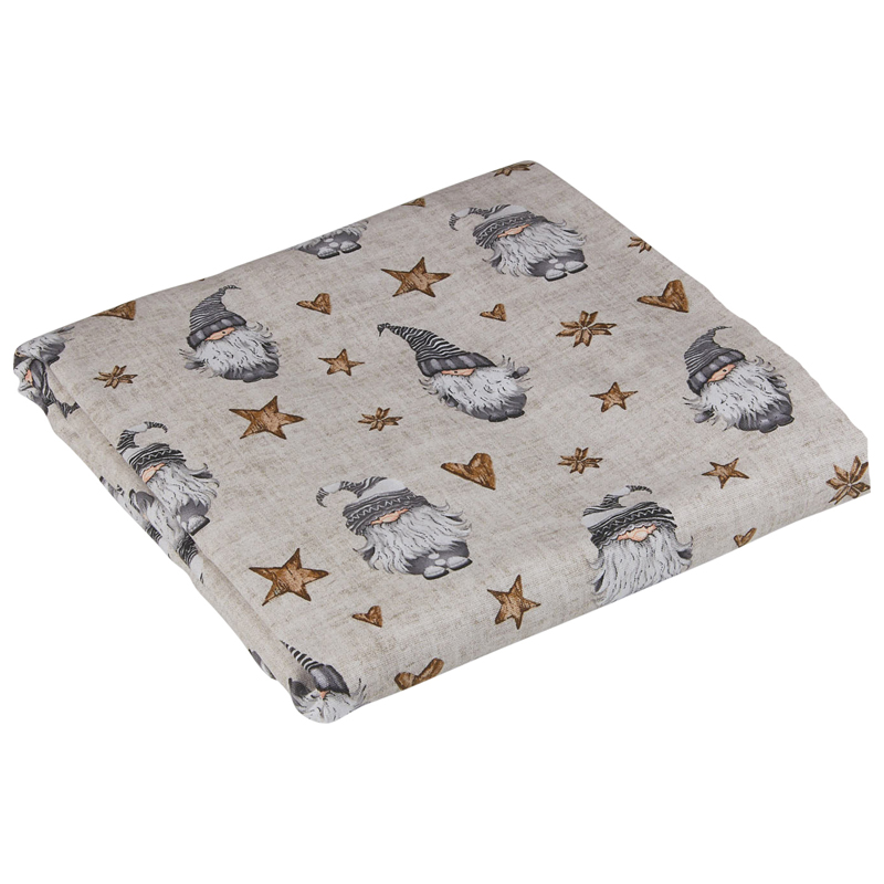 Nisse duk från Fondaco är en grå duk med charmigt motiv av små tomtar som skapar en lekfull och stämningsfull känsla.