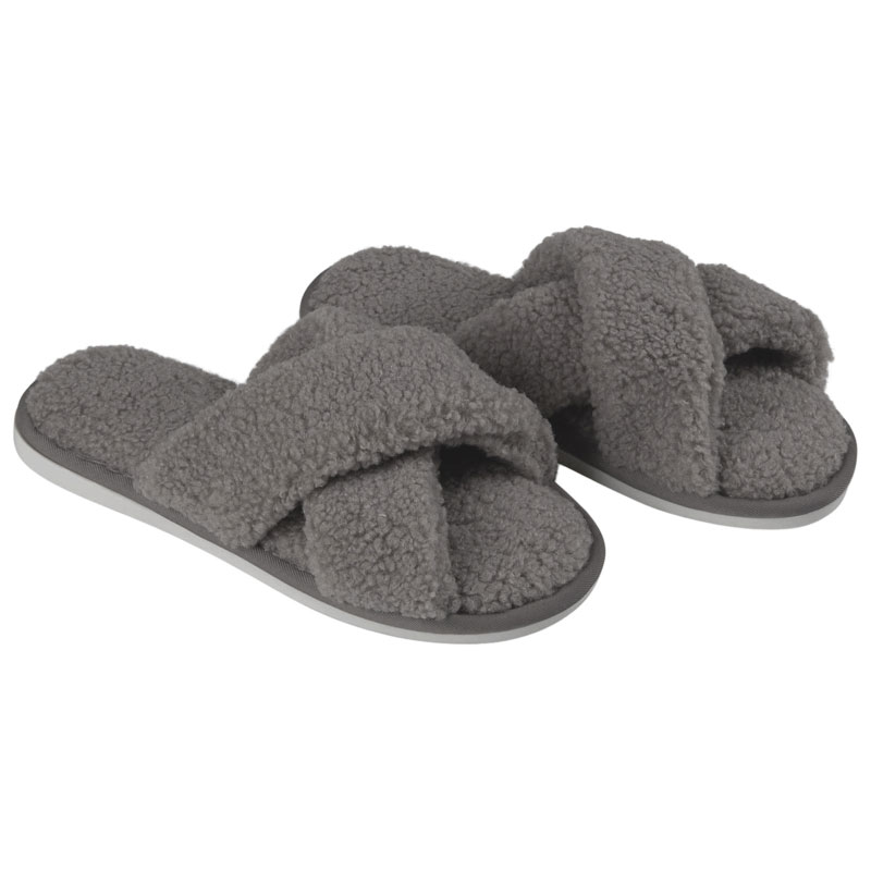 Mysa är ett par underbara tofflor från Fondaco, med en snygg korsad framsida i teddymaterial.