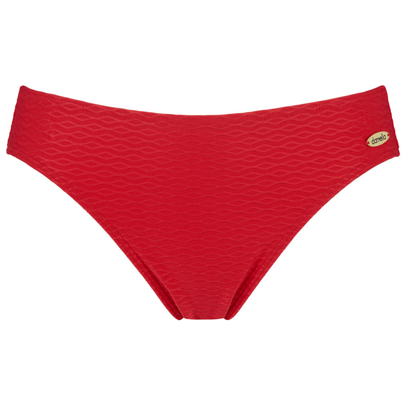 Elegant bikinitrosa med låg midja från Damella of Sweden. Trosan har en följsam passform och är fodrad framtill för extra komfort och täckning. Den perfekta bikinitrosan för den trendiga och bekväma strandstilen.