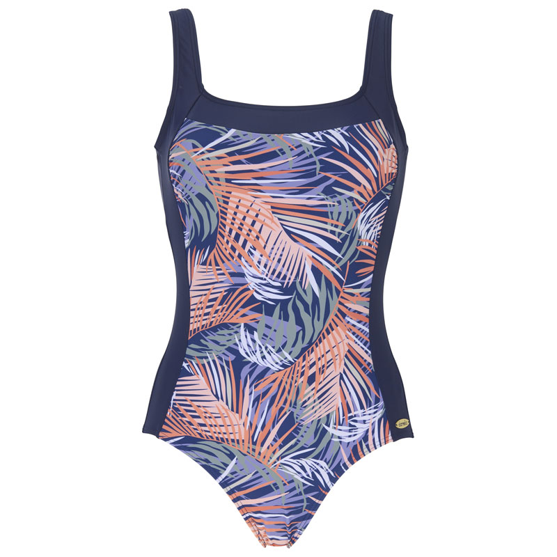 Fin baddräkt från Damella of Sweden. Den kombinerar både bystsupport och mjuk vaddering för maximal komfort. I ett tjusigt mönster och härliga färgnyanser.
