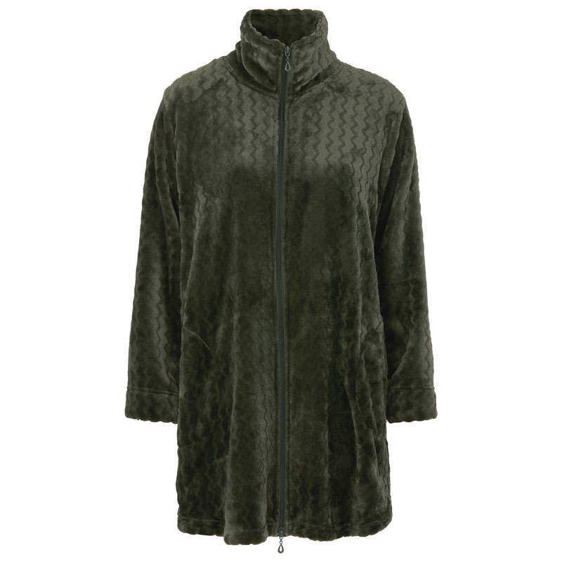 Mysig lång jacka från Damella of Sweden. Designad i bekväm jacquardfleece med en 2-vägs dragkedja och fickor.