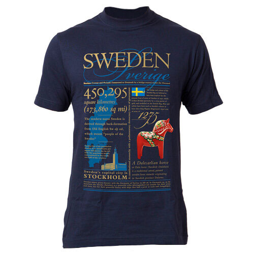 Snygg t-shirt från Nordic Souvenir, med fakta om Sverige samt en dalahäst.