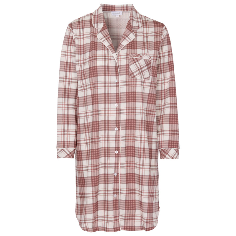 Behaglig och snygg nattskjorta från Damella of Sweden. Tillverkad i mjuk och skön bomullsjersey i ett snyggt rutmönster. Designad med långa ärmar, knappar framtill och en klassik krage.