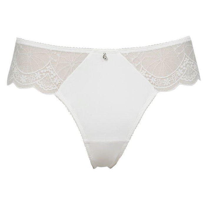 Julia från Trofé, sköna trosor i brazilian-modell med sidoparti och bakstycke i genombruten spets och strassdetalj mitt fram.