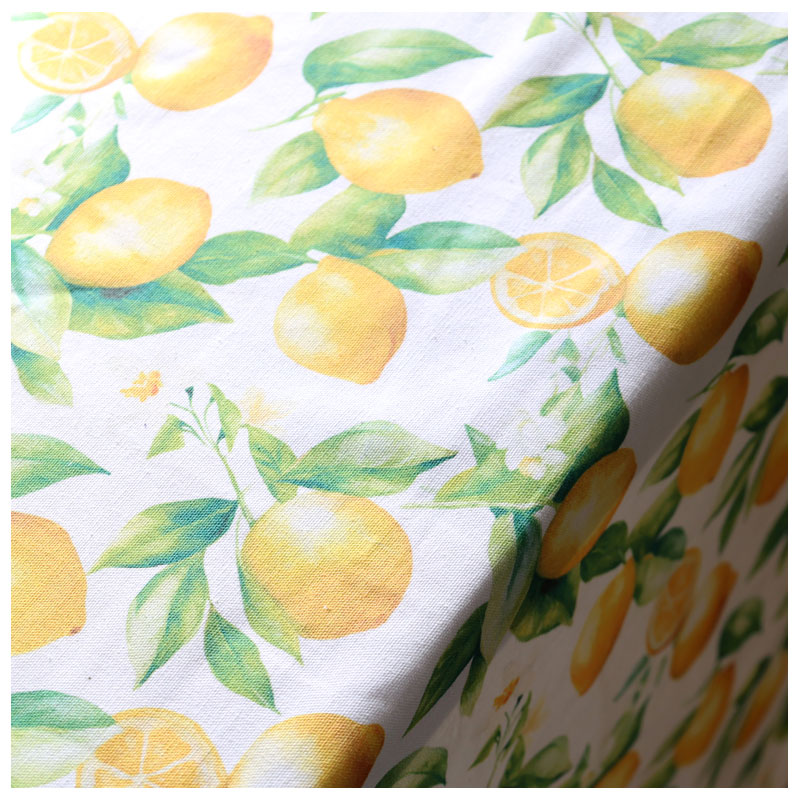 Vacker bomullsduk från Chic Antique, designad i ett tjusigt mönster av citroner.