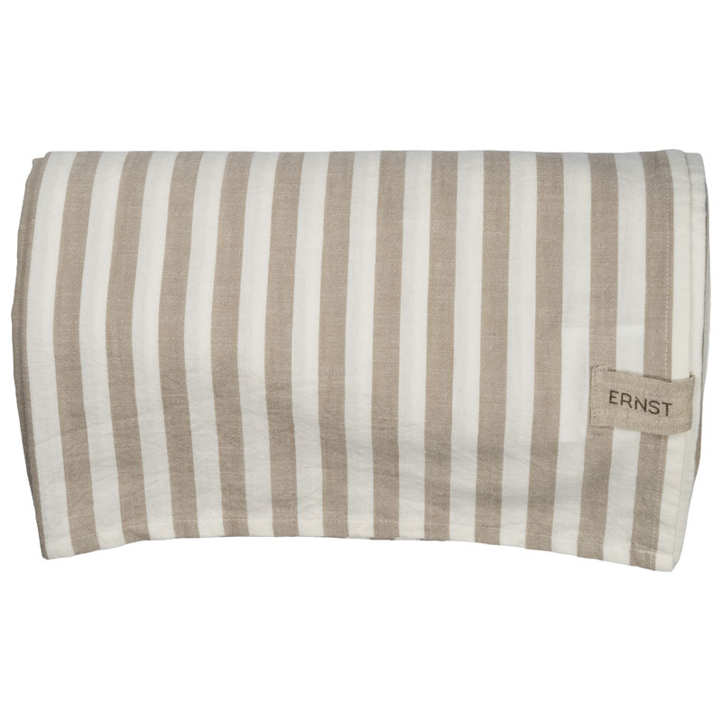 Härlig bordsduk från ERNST, med ett klassiskt bredrandigt mönster i beige och vitt.