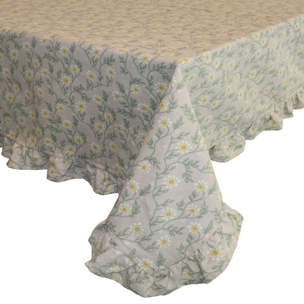 Vacker duk från Redlunds, med en tjusig volang runt om. I ett gulligt blommigt mönster skapat av svensk designer.
