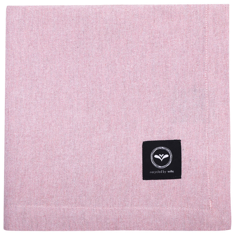 Hedvig från Recycled by Wille. Klassisk bordsduk i återvunnet chambraytyg i ljusrosa. Duken är tillverkad i återvunnen bomulls-/polyestermix samt behandlad med en nedbrytbar akrylatlösning som skyddar mot smuts och väta och gör duken lätt att torka av.