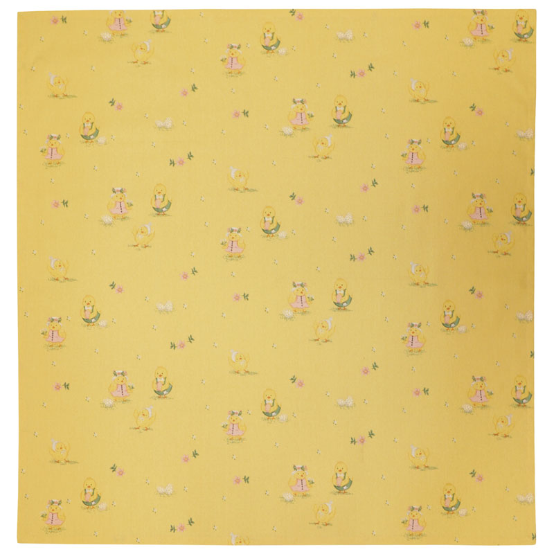 Urgullig duk med tryckta kycklingar och påskägg på från Redlunds. Mönster skapat av svensk designer.