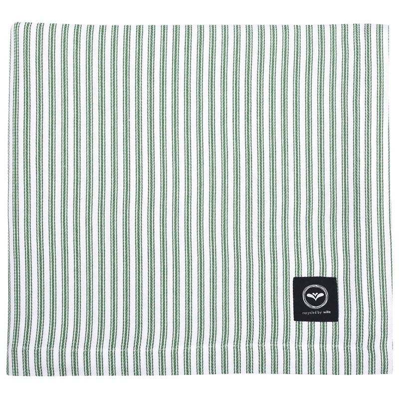 Lina är en klassiskt randig bordsduk i grönt/vitt från Recycled By Wille, tillverkad i 99% återvunnen textil.