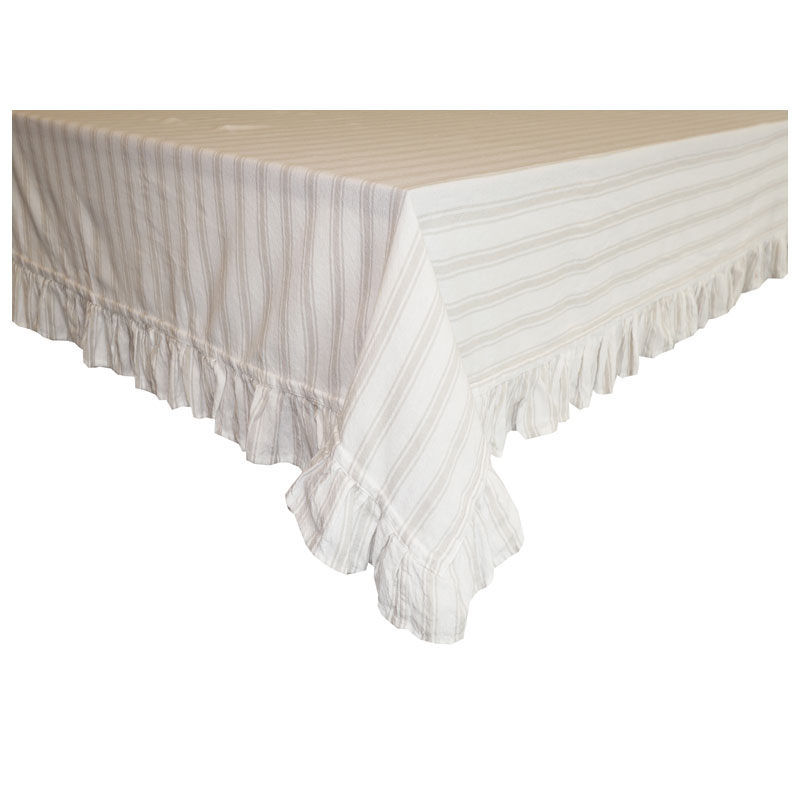 Madicken är en vackert randigt dig i linne och vitt, med en dekorativ volang längst kanten.
