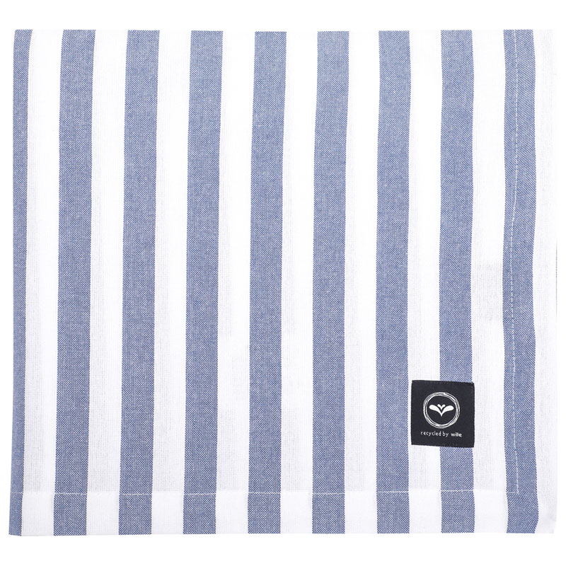Pelle är en klassiskt randig bordsduk i gråblå/vitt.