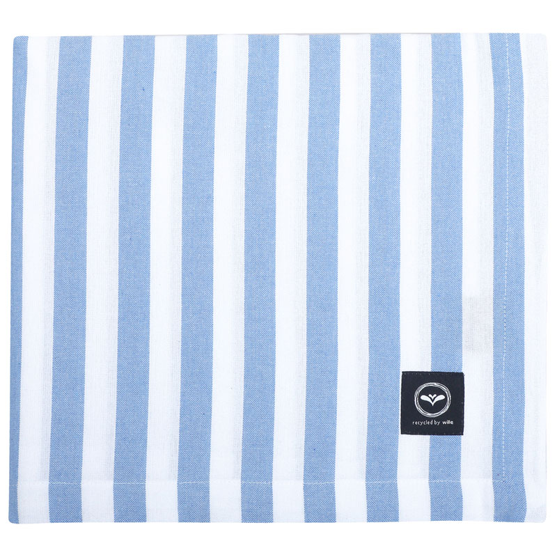 Pelle är en klassiskt randig bordsduk i ljusblått/vitt.