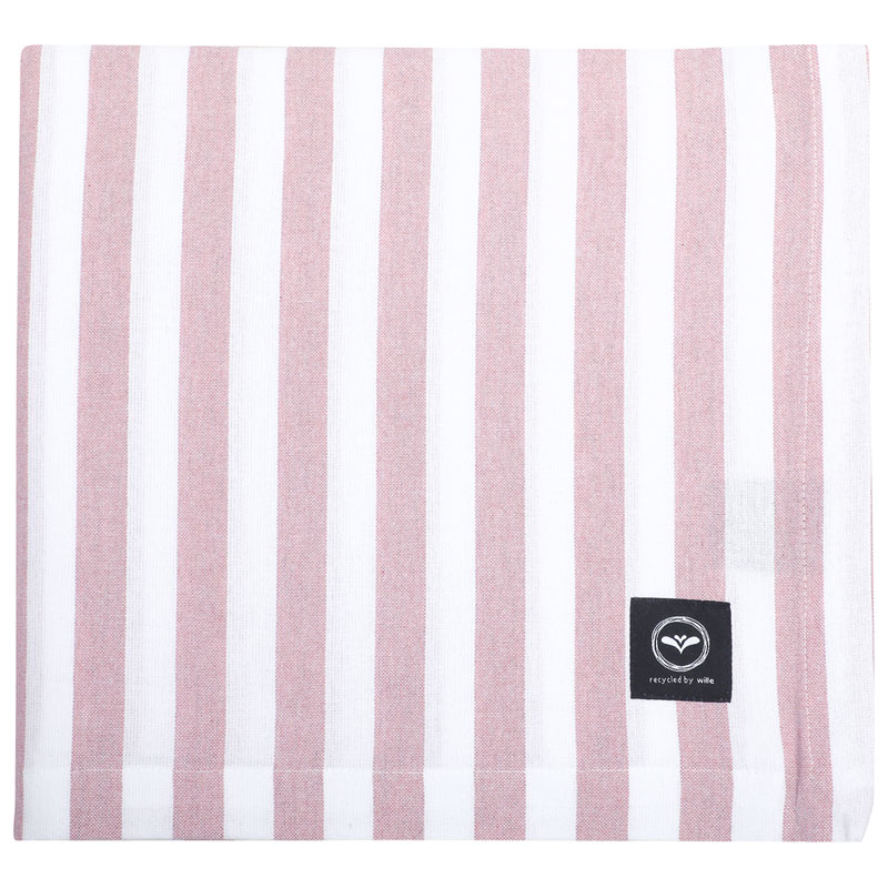Pelle är en klassiskt randig bordsduk i ljusrosa/vitt.