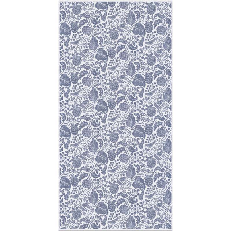 Skogsblå från Ekelund är en vacker bordsduk tillverkad i 100% bomull, med ett underbart mönster av lika bär och fåglar i blått mot en vit botten.
