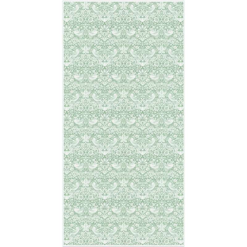 Vacker bordsduk från Ekelund, tillverkad i en bomull/lin blandning. Med det klassiska William Morris mönstret Strawberry Theif i vitt mot en grön botten.