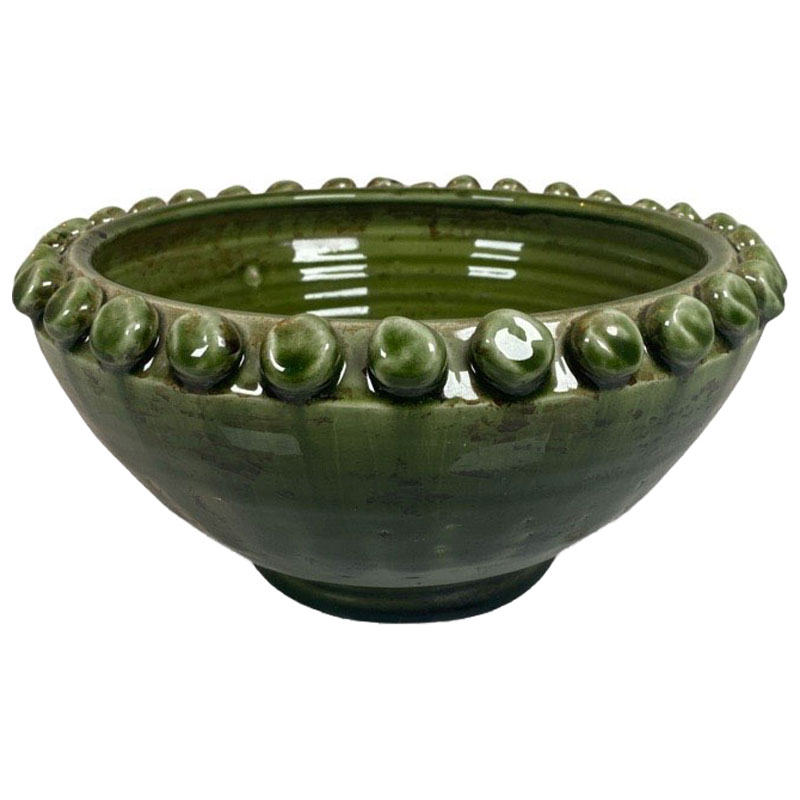 Vacker skål från Miljögården, tillverkad i keramik prydd av en vacker grön glasyr.