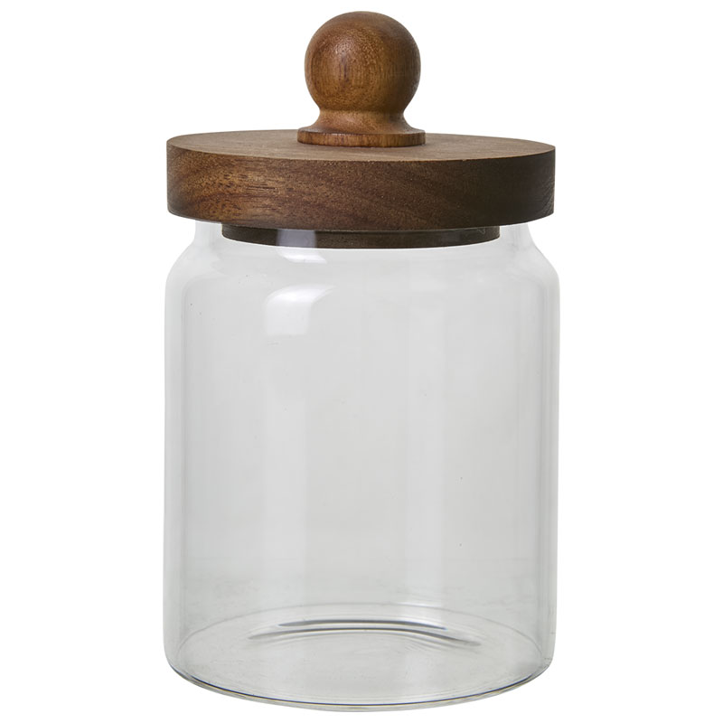 Snygg glasburk med lock i trä från Affari of Sweden.