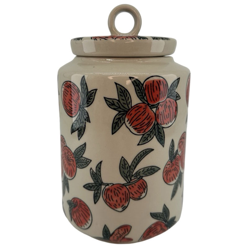 Vacker burk med lock från Miljögården med ett stiligt granatäppleliknande mönster.