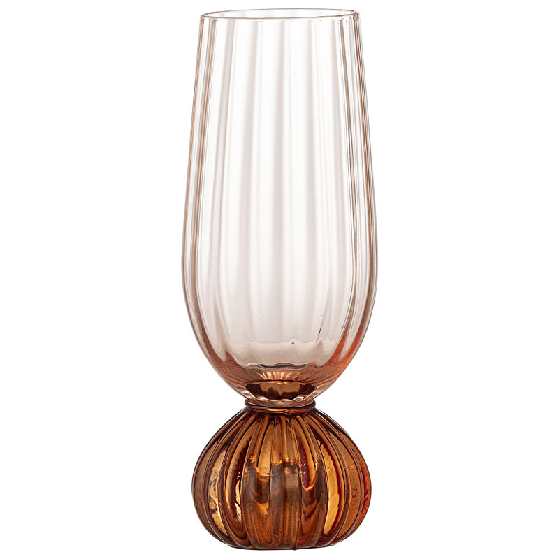 Taurin champagneglas från Bloomingville är tillverkat av glas med en mjuk roséfärgad nyans och en räfflad botten i en djupare ton.
