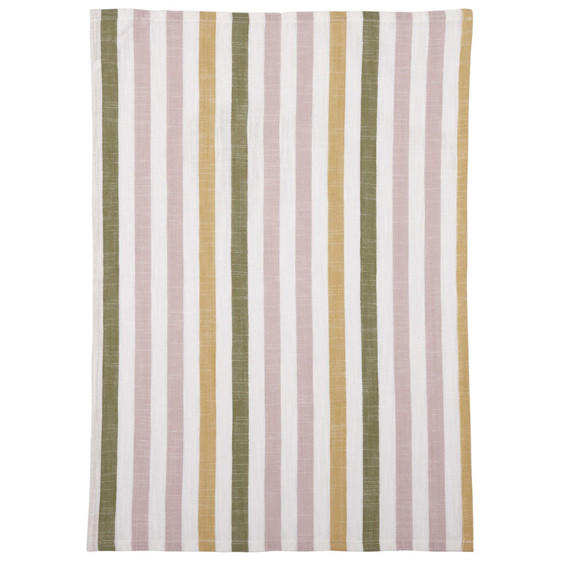 Alba är en läcker kökshandduk, prydd av ett charmigt flerfärgat randmönster som skapar en lekfull touch i ditt kök.