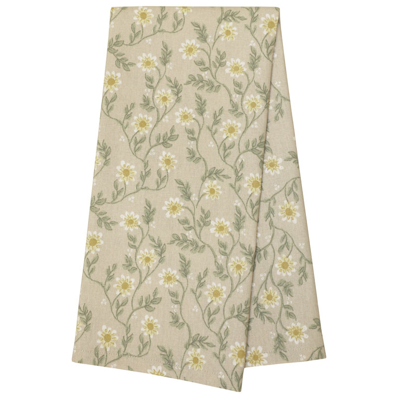 Gullig kökshandduk från Redlunds, med ett vackert blommigt mönster mot en beige botten. Det vackra mönstret är skapat av svensk designer.
