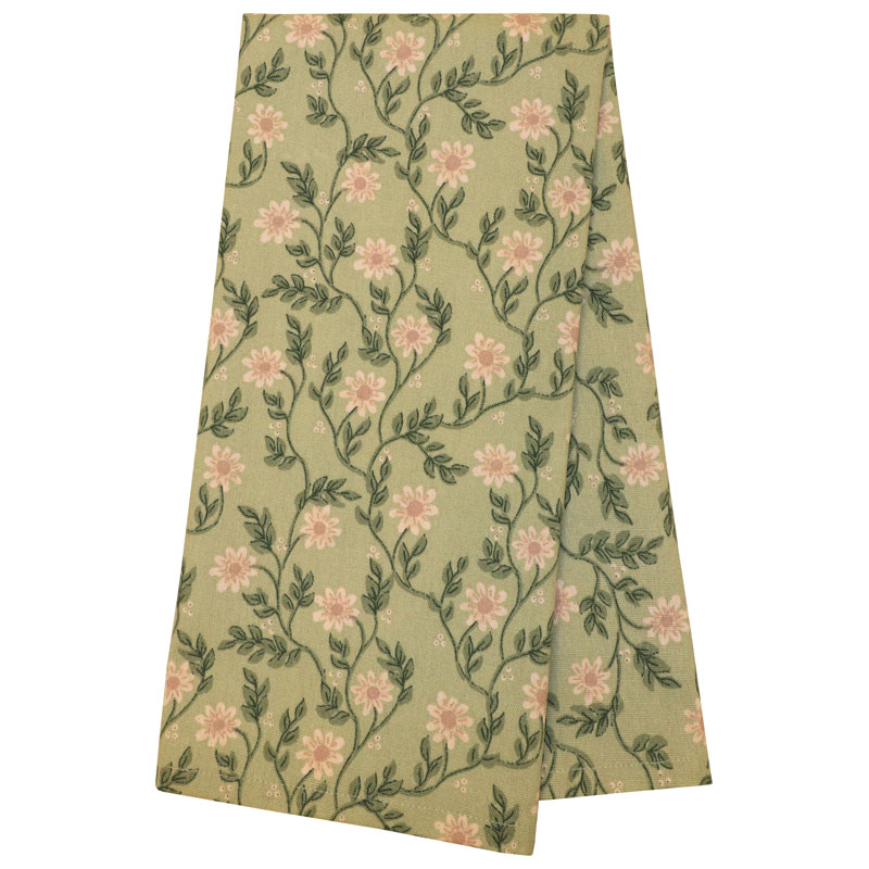Gullig kökshandduk från Redlunds, med ett vackert blommigt mönster mot en grön botten. Det vackra mönstret är skapat av svensk designer.