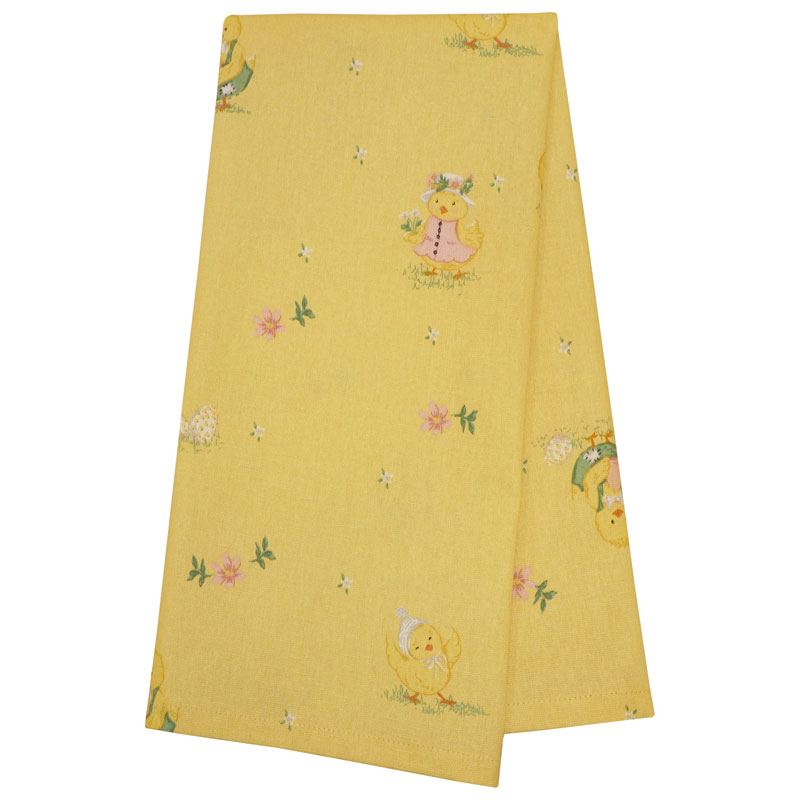 Urgullig kökshandduk med tryckta kycklingar och påskägg på från Redlunds. Mönster skapat av svensk designer.