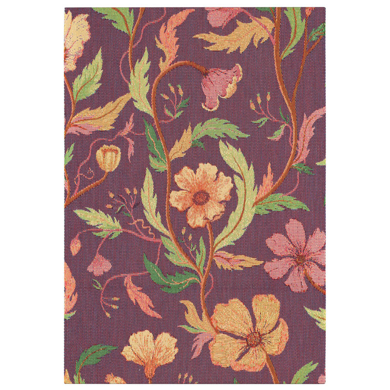 Linn är en iögonfallande kökshandduk från Ekelund, med en lila botten och ett blommönster i gula, gröna och rosa toner.